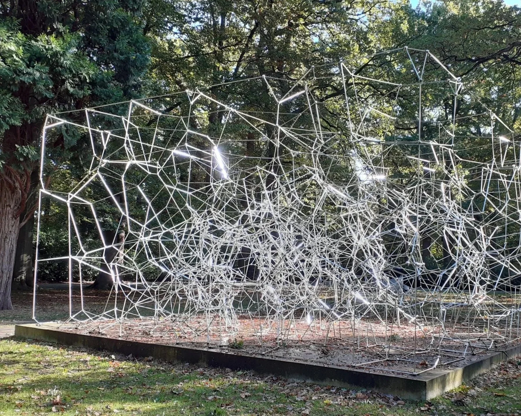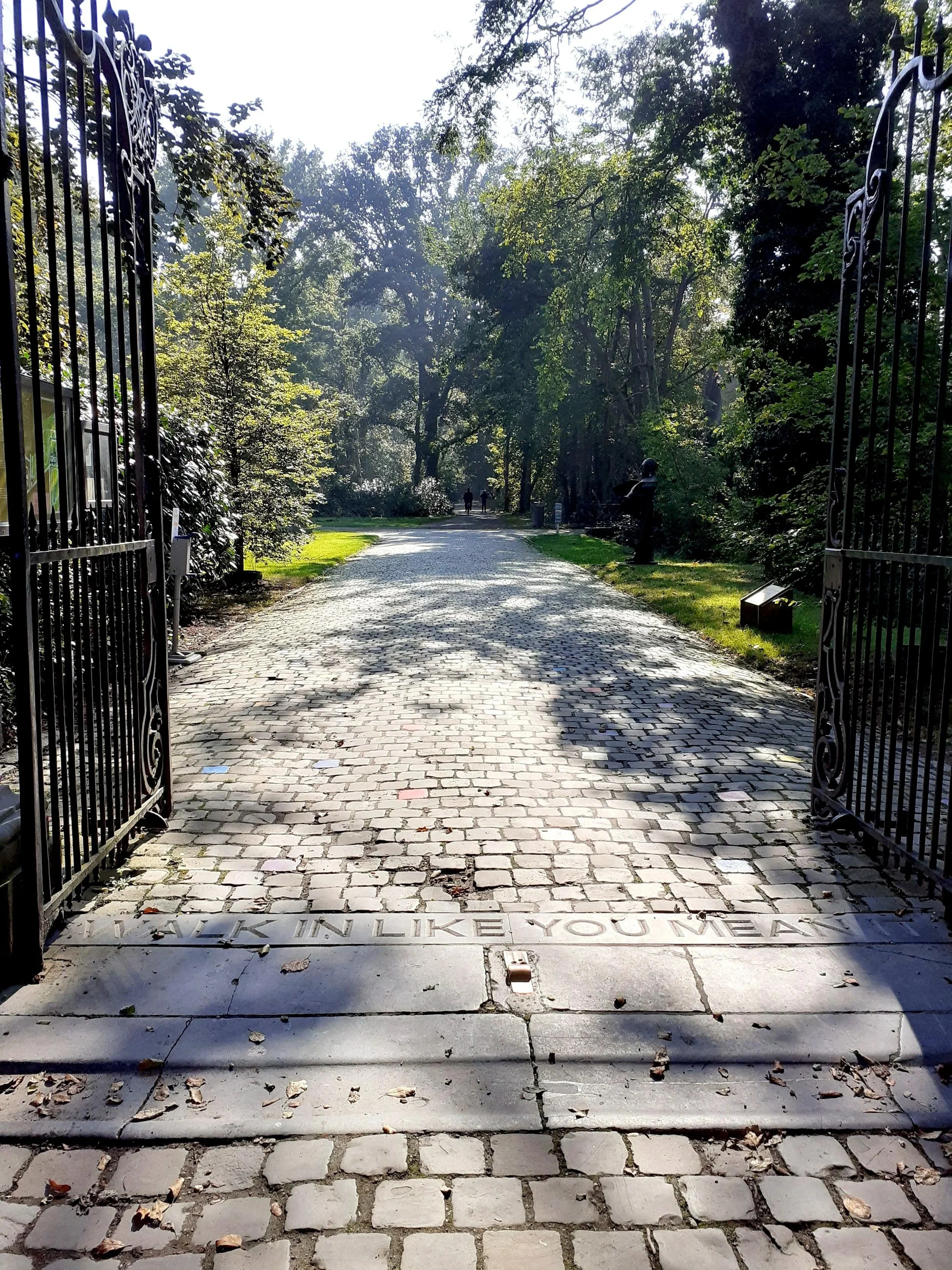 “Aan de hoofdingang van het Middelheimmuseum botst de bezoeker onmiddellijk op een kunstwerk. De kunstenaar vraagt ons om binnen te wandelen alsof we het menen – maar hoe doe je dat, met overtuiging binnengaan? Hoe ziet dat eruit? Waar zijn we van overtuigd? Met welk doel gaan we het park in?”
